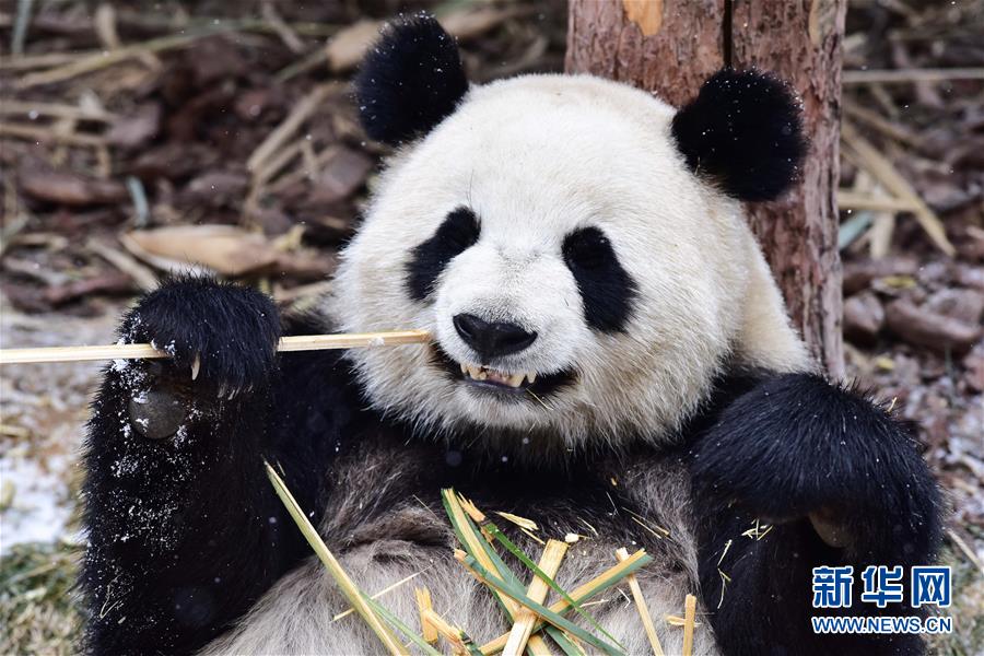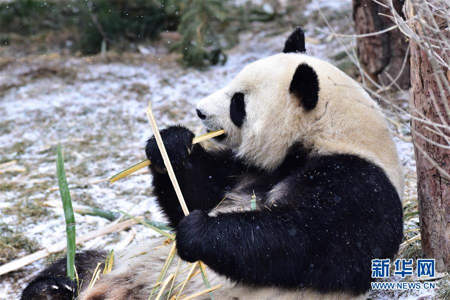 11月29日,在西寧熊貓館內(nèi),兩只大熊貓?jiān)诔灾褡印?當(dāng)日,青海省西寧市迎來降雪,西寧熊貓館四只“萌寵”大熊貓?jiān)谘┨炖锵硎苤灾褡拥臉啡?。?jù)了解,大熊貓生活的適宜溫度在26攝氏度至零下5攝氏度之間,冬季氣溫低于零下5攝氏度時(shí),場館會(huì)啟用保暖設(shè)施。 新華社記者 吳剛 攝