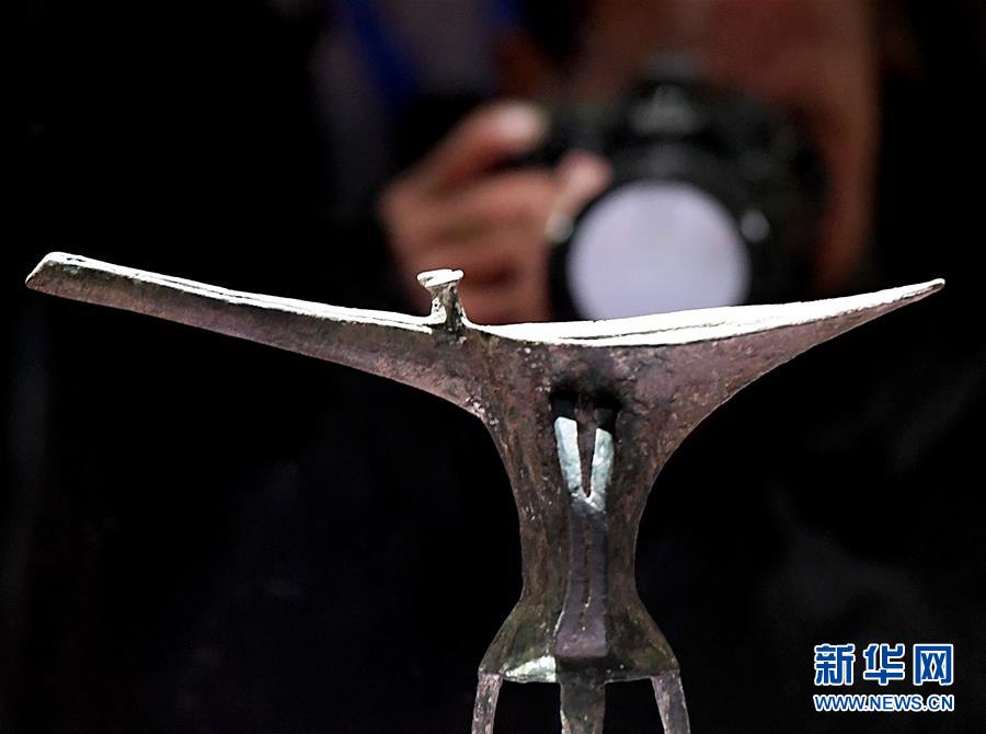 參觀者在二里頭夏都遺址博物館內拍攝展品“乳釘紋銅爵”(10月19日攝)。新華社記者李安攝