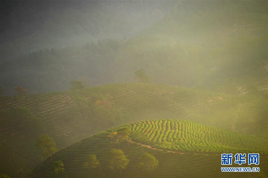 福建省武夷山的茶山云霧繚繞,在朝陽照射下如夢(mèng)如幻(11月17日攝)。新華社記者宋為偉攝