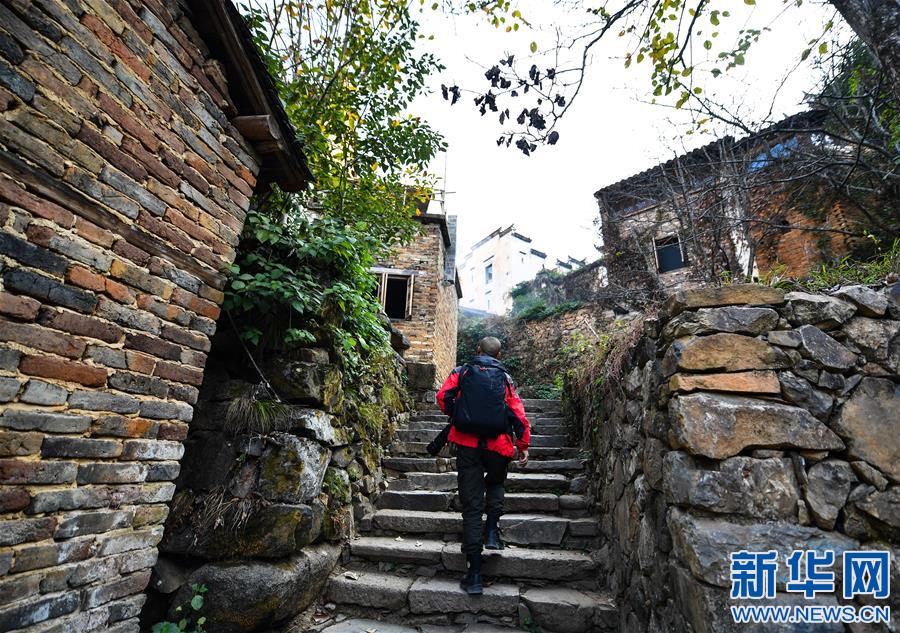曹加祥在篁嶺村采風(fēng)(11月6日攝)。今年44歲的曹加祥是江西省婺源縣的農(nóng)民。他自1993年購(gòu)買第一臺(tái)相機(jī)以來(lái),就愛上了攝影。2012年,曹加祥辭去工作,成為婺源縣江灣鎮(zhèn)篁嶺村的一名鄉(xiāng)村攝影師。
