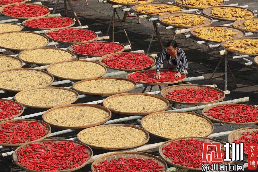 2019年9月9日,安徽黃山,呈坎古村村民在曬場上晾曬農(nóng)作物。