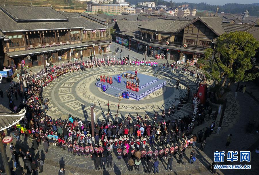 12月7日無人機拍攝的丹寨縣“祭尤節(jié)”活動現(xiàn)場。新華社記者 楊文斌 攝