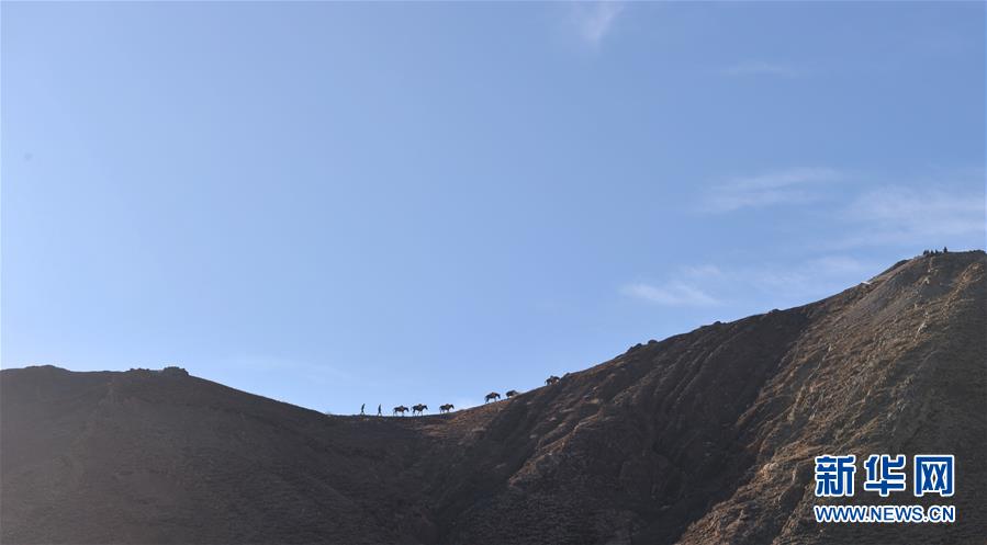 12月6日,騾馬隊(duì)馱負(fù)工程物料前往山頂塔基施工現(xiàn)場。新華社記者侯捷攝