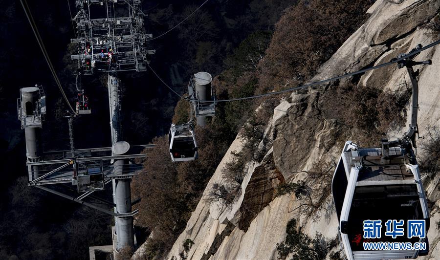 華山太華索道維修人員對(duì)索道支架及鋼絲繩進(jìn)行檢測(12月6日攝)。新華社記者陶明攝