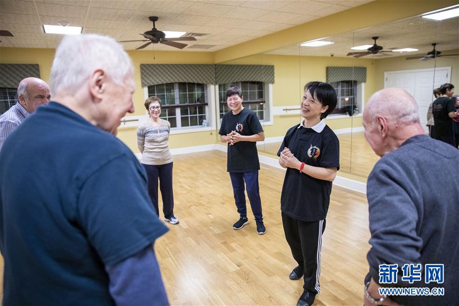 陳思坦的夫人林旭在位于美國紐約長島的一所社區(qū)老年活動中心指導(dǎo)老人練習(xí)太極(11月20日攝)。這里是陳思坦夫婦開設(shè)的一個公益教學(xué)項目。11月的紐約已進(jìn)入初冬,位于美國紐約長島的思坦太極武術(shù)中心依然一片紅火景象,學(xué)員們從5歲的孩童到80多歲的老人,操練著太極拳、太極劍、長拳等武術(shù)招式。這里的主人陳思坦、林旭夫婦,也從早忙到晚,精心指導(dǎo)每一位學(xué)員的一招一式。6歲習(xí)武,22歲成為中國全國冠軍,26歲獲得首個世界冠軍……直到30歲退役,陳思坦在運動員生涯中曾獲得過32次國內(nèi)外各類武術(shù)大賽冠軍。36歲那年,懷著以太極拳和中國武術(shù)為媒介向世界推廣中國文化的夢想,陳思坦到美國紐約尋找新的舞臺。經(jīng)過十多年的艱苦打拼,陳思坦夫婦目前在紐約長島、法拉盛和曼哈頓都開設(shè)了長期的課程,思坦太極注冊在編的各個年齡段的學(xué)員近千人,有些“高徒”現(xiàn)在自己也開班授課,將太極推向更多地方。陳思坦夫婦現(xiàn)在思考更多的是如何將太極和武術(shù)推廣給更多的美國人,并讓他們理解其中蘊含的平衡、和諧的中國文化理念。他們創(chuàng)辦了紐約太極健身氣功活動日,在各類學(xué)校和社區(qū)開設(shè)太極或者武術(shù)課程,并利用美國的亞太裔文化月和多元文化節(jié)舉行武術(shù)和太極表演和體驗課程,讓更多美國人親眼看到、親身體會中國武術(shù)的魅力。從2011年起,他們還參與創(chuàng)辦了紐約太極大賽,如今已舉行九屆,吸引了美國、加拿大和中國國內(nèi)的隊伍參賽,影響力逐漸擴大。新華社記者王迎攝