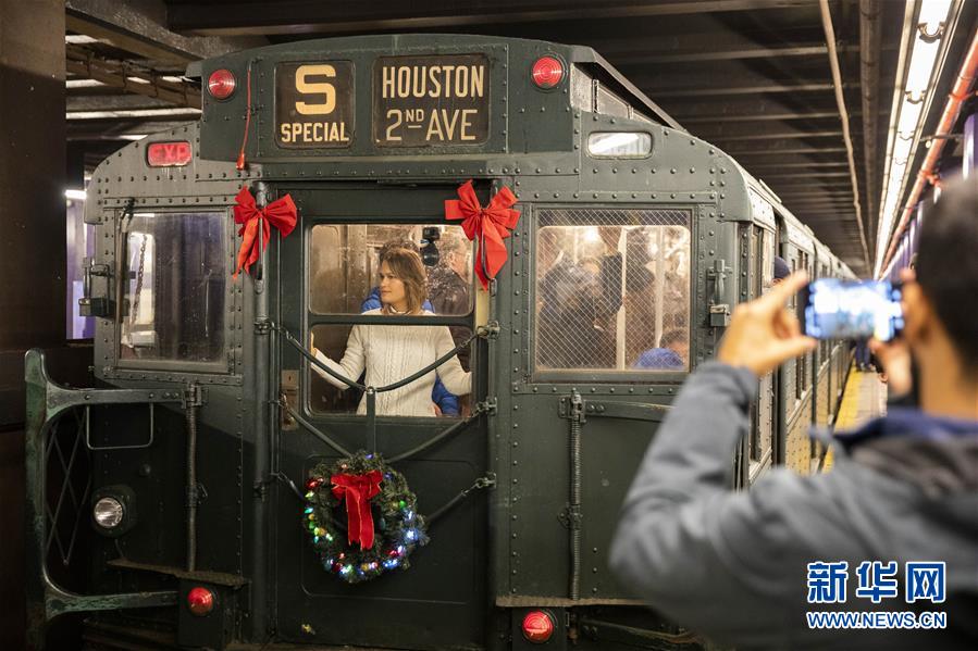 12月8日,在美國(guó)紐約,一名女士在“懷舊專列”里拍照。每年感恩節(jié)到新年之間的星期日,紐約地鐵都會(huì)用1932年至1977年間使用的老式列車在運(yùn)營(yíng)的線路上開行特別的“懷舊專列”,人們穿戴舊時(shí)服飾專程前來(lái)搭乘,體驗(yàn)時(shí)光回溯的奇妙旅程。新華社記者王迎攝