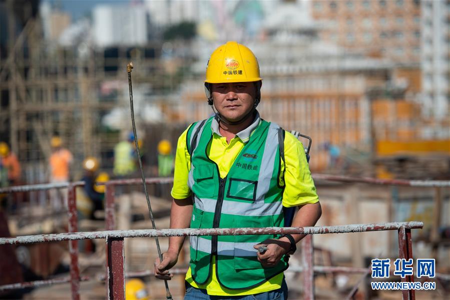 11月22日,澳門工地工人何錦在工地上,他已經(jīng)工作了25年,主要負(fù)責(zé)處理工地事項(xiàng)。  新華社記者 張金加 攝