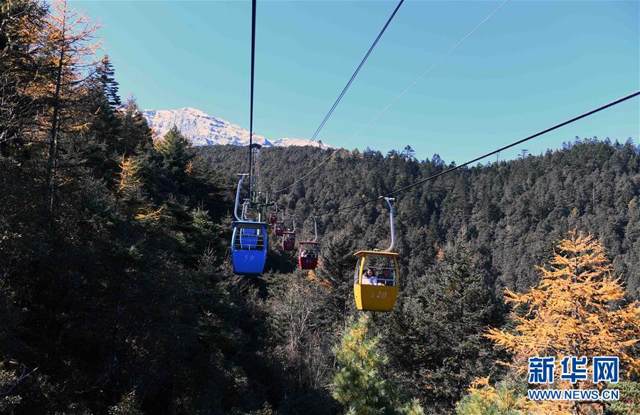 11月10日,游客乘坐纜車觀賞麗江玉龍雪山風光。新華社記者楊宗友攝