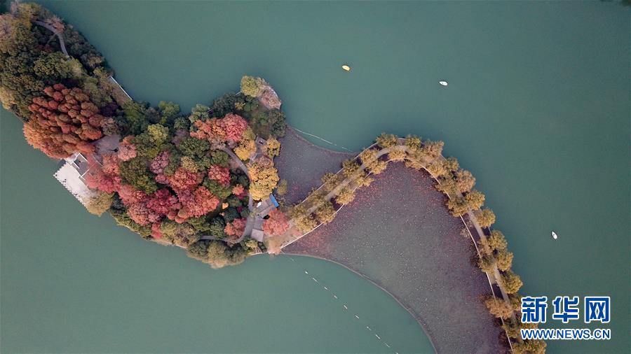 12月10日,小船在湖南烈士公園年嘉湖湖面行駛(無(wú)人機(jī)拍攝)。新華社記者陳澤國(guó)攝