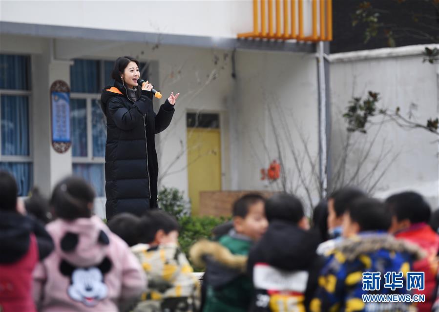 12月12日,文藝志愿者在中益鄉(xiāng)小學(xué)演唱歌曲《天路》。新華社記者 王全超 攝