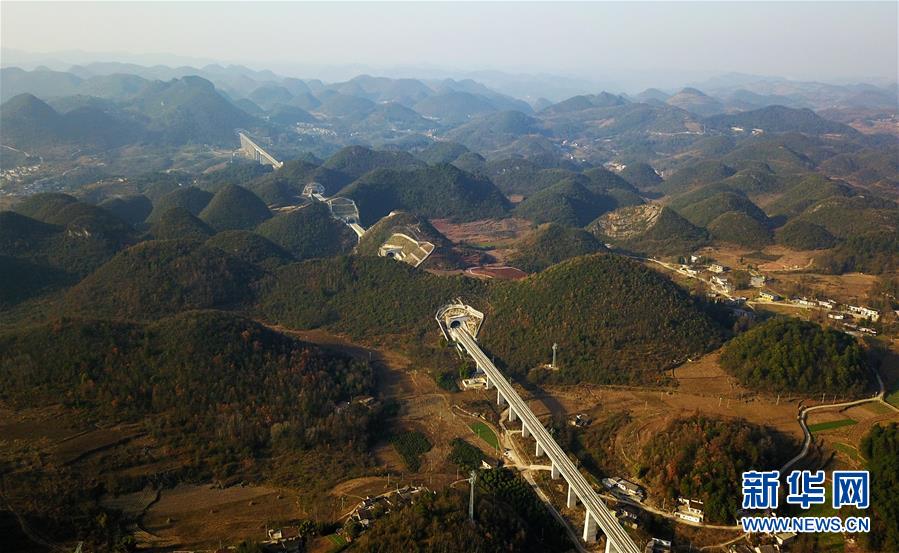 這是12月15日無人機(jī)拍攝的成貴高鐵貴州清鎮(zhèn)段。新華社記者楊文斌攝
