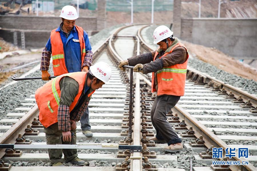 12月17日,中鐵八局建設者在改貌鐵路口岸施工。 新華社記者 劉續(xù) 攝