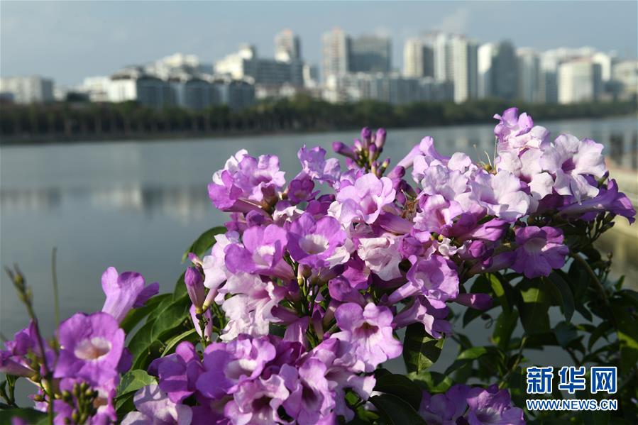 這是南寧市南湖邊盛開的鮮花(12月17日攝)。新華社記者 陸波岸 攝