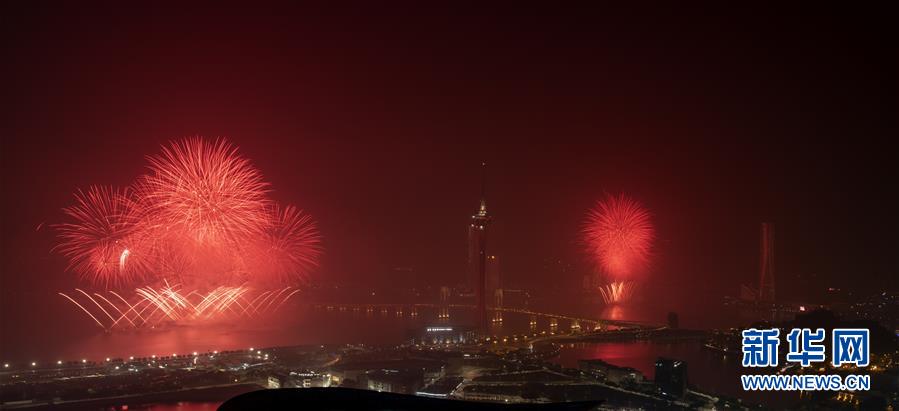 12月22日,煙花在澳門上空綻放。當(dāng)晚,澳門與珠海首次聯(lián)合舉行煙花匯演,慶祝澳門回歸祖國(guó)20周年。新華社記者呂小煒攝