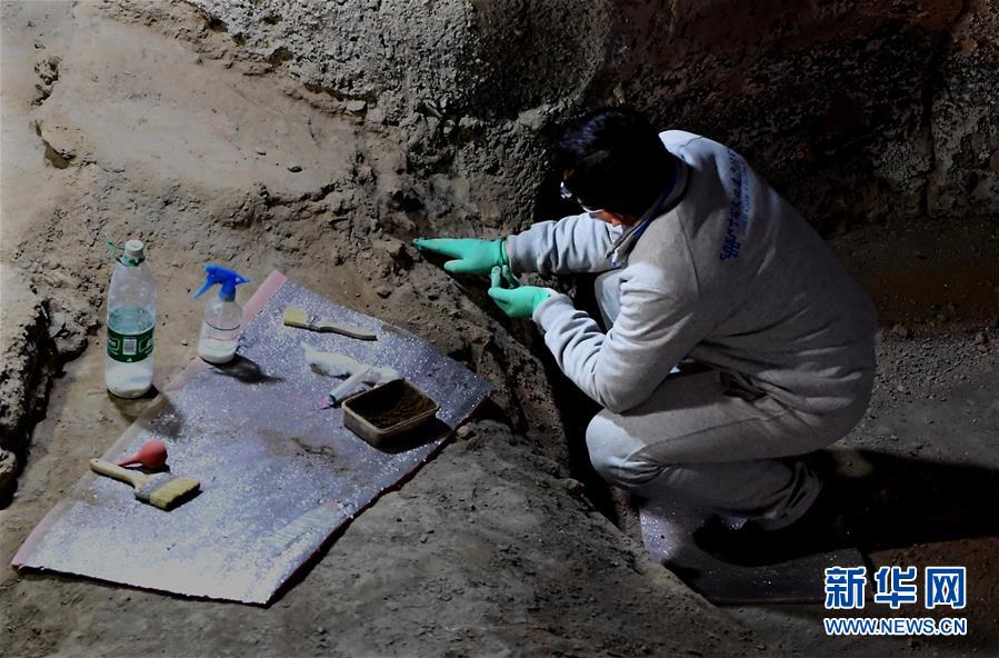 11月15日,工人在發(fā)掘現(xiàn)場(chǎng)作業(yè)。