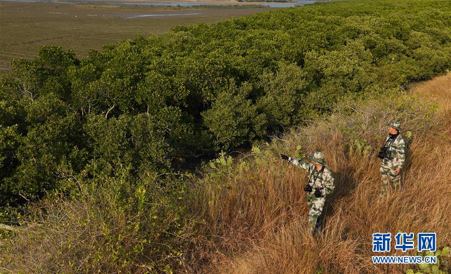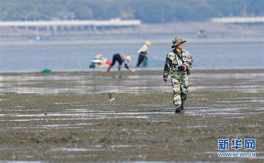 海南儋州新英灣紅樹林市級自然保護區(qū)護林員陳正平在保護區(qū)內(nèi)的灘涂上巡護(12月10日攝)。 陳正平2010年開始在保護區(qū)工作,他將工作發(fā)展成愛好,廣泛參加各種培訓(xùn)和業(yè)內(nèi)交流。他在工作中拍到瀕危鳥類白肩雕出現(xiàn)在海南的照片,這刷新了海南省的鳥種記錄。新華社記者楊冠宇攝