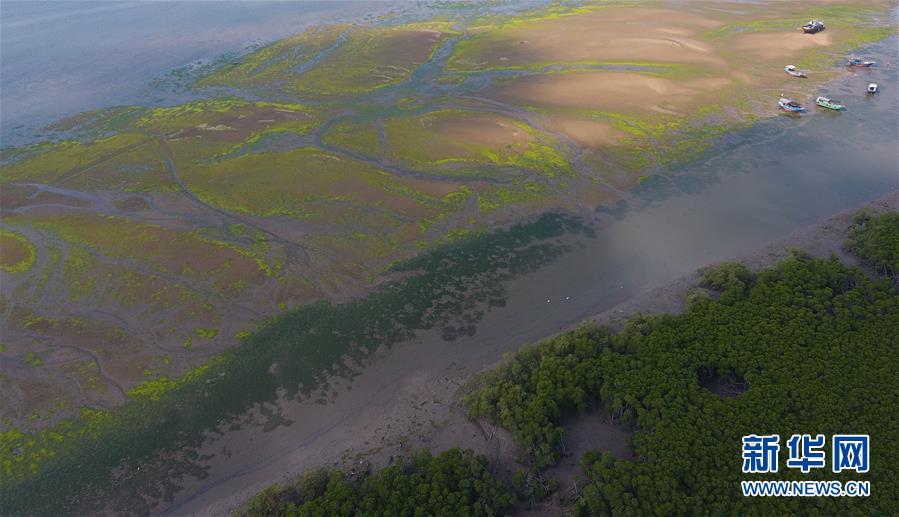 海南儋州新英灣紅樹林市級自然保護區(qū)的紅樹林和灘涂(12月10日無人機拍攝)。新華社記者楊冠宇攝
