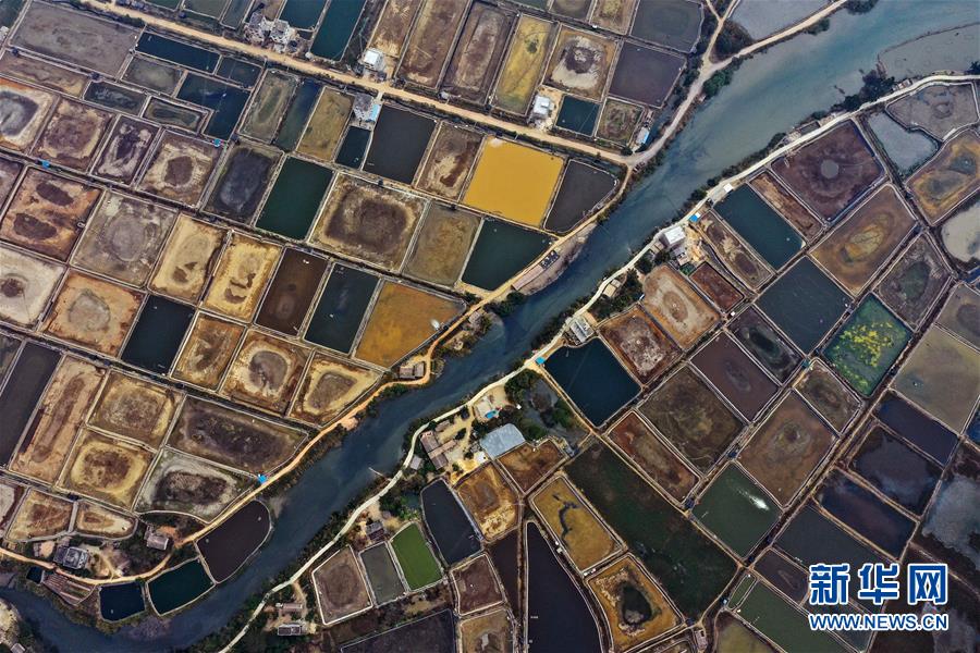 12月21日無(wú)人機(jī)拍攝的廣西合浦縣黨江鎮(zhèn)更螺圍出??诘奈r塘。冬日,廣西廉州灣海域風(fēng)光別致。新華社記者張愛(ài)林?jǐn)z