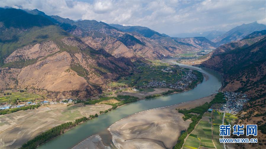 這是無(wú)人機(jī)拍攝的“長(zhǎng)江第一灣”(3月17日攝)?!伴L(zhǎng)江第一灣”位于云南省麗江市玉龍納西族自治縣石鼓鎮(zhèn),萬(wàn)里長(zhǎng)江從青藏高原奔騰而下,與瀾滄江、怒江一起在橫斷山脈的高山深谷中穿行形成并流的壯麗景觀。金沙江在麗江石鼓鎮(zhèn)突然以急轉(zhuǎn)彎轉(zhuǎn)向東北,形成一個(gè)宛若“V”字形的大轉(zhuǎn)彎,得名“長(zhǎng)江第一灣”。春日里,“長(zhǎng)江第一灣”江水青碧,美景迷人。新華社記者胡超攝