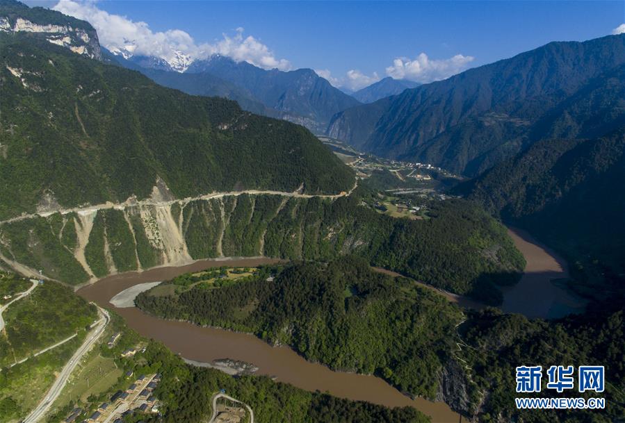 這是4月27日在云南省貢山獨(dú)龍族怒族自治縣丙中洛鎮(zhèn)拍攝的“怒江第一灣”(無(wú)人機(jī)拍攝)。怒江自青藏高原一路奔騰向南流至云南省貢山獨(dú)龍族怒族自治縣丙中洛鎮(zhèn),高黎貢山與碧羅雪山夾江而立,江水順山勢(shì)急轉(zhuǎn)形成了一個(gè)氣勢(shì)磅礴的半圓形大灣,被稱(chēng)為“怒江第一灣”。新華社記者江文耀攝