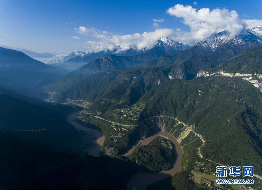 這是4月27日在云南省貢山獨(dú)龍族怒族自治縣丙中洛鎮(zhèn)拍攝的“怒江第一灣”(無(wú)人機(jī)拍攝)。新華社記者江文耀攝