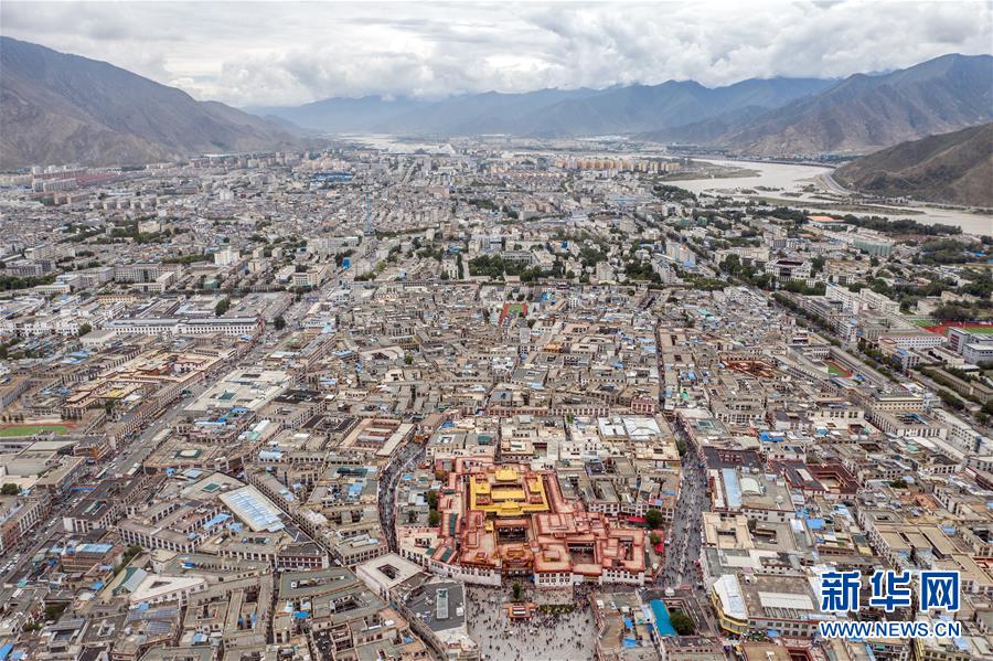 8月10日無人機拍攝的大昭寺和布達拉宮。新華社記者王建華攝