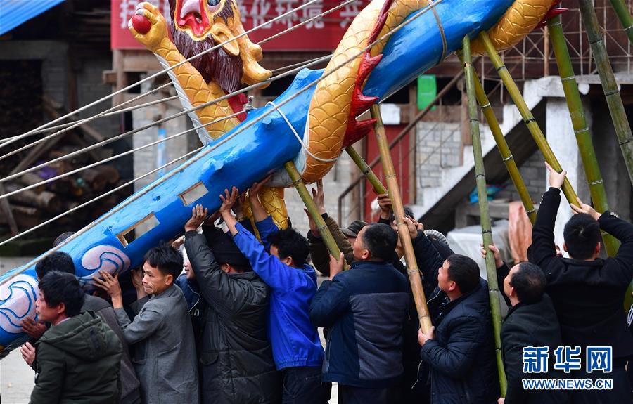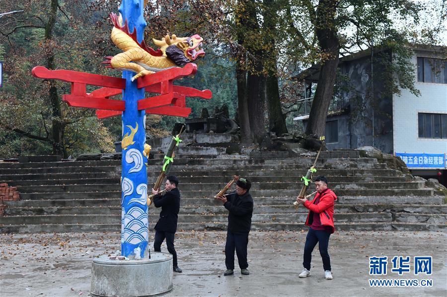 烏英苗寨村民在立新蘆笙柱(12月22日攝)。新華社記者黃孝邦攝