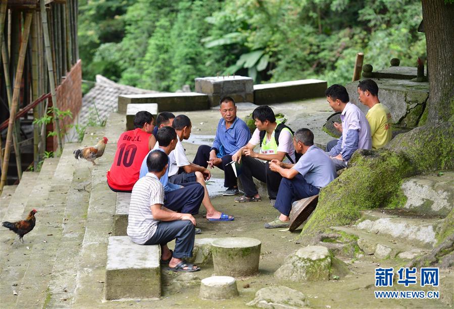 聯(lián)合黨支部的黨員們在烏英苗寨開會(7月5日攝)。新華社記者黃孝邦攝