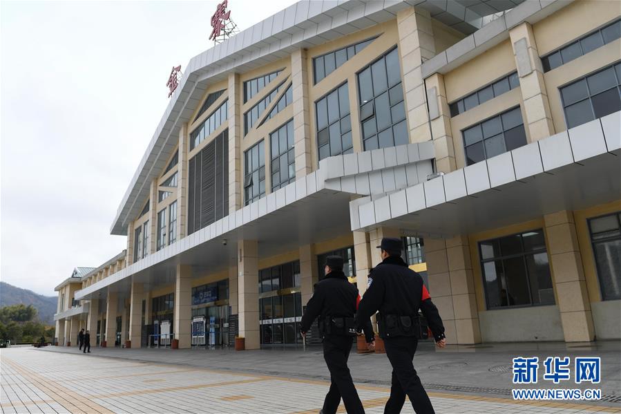 金寨火車站派出所民警張嗣一在站臺接車(12月19日攝)。安徽合肥鐵路公安處金寨火車站派出所位于大別山腹地。在這里,除了所領(lǐng)導(dǎo)外,青年民警平均年齡不到29歲。他們遠(yuǎn)離家鄉(xiāng),扎根大山深處的小站派出所,戰(zhàn)斗在守護(hù)客運(yùn)平安的第一線。新華社記者張端攝
