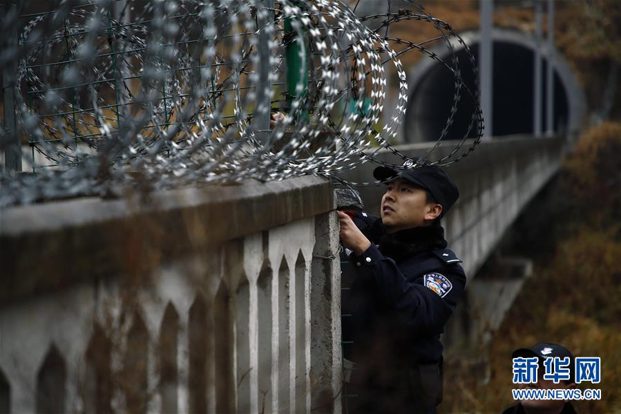 12月18日,常曉龍(右)和輔警在治安崗?fù)だ锝涣鳌P氯A社記者劉軍喜攝