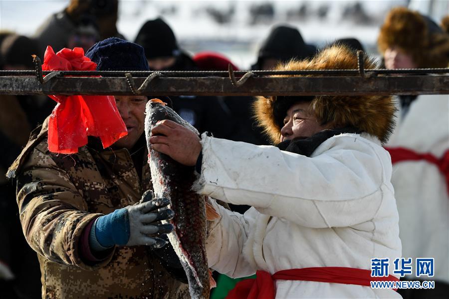 12月18日,工作人員將“頭魚”懸掛起來,準(zhǔn)備售賣。新華社記者劉磊攝