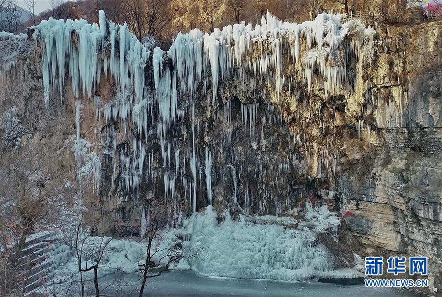 這是平山縣沕沕水景區(qū)的冰瀑(12月25日無人機(jī)攝)。新華社記者楊世堯攝