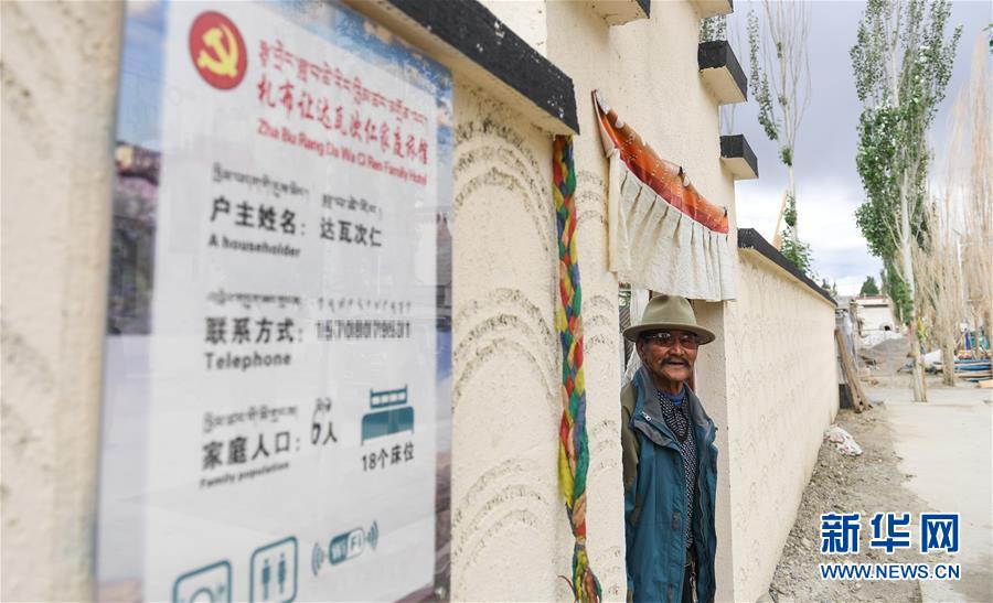 76歲的達(dá)瓦次仁在位于西藏阿里地區(qū)札達(dá)縣托林鎮(zhèn)札布讓村的家門口(7月30日攝)。新華社記者晉美多吉攝