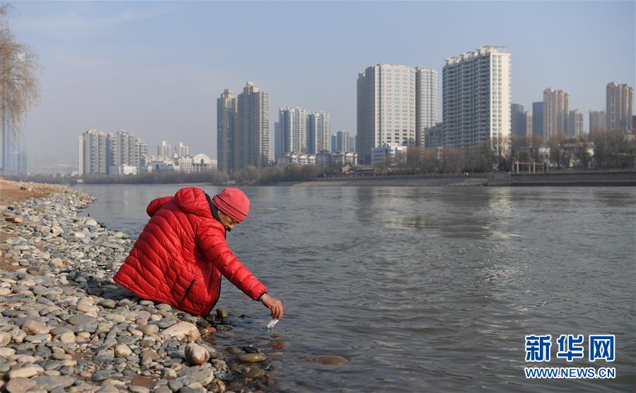 12月20日,冬泳愛好者孟猛在冬泳前測(cè)量水溫,當(dāng)日水溫僅為5攝氏度。新華社記者陶希夷攝