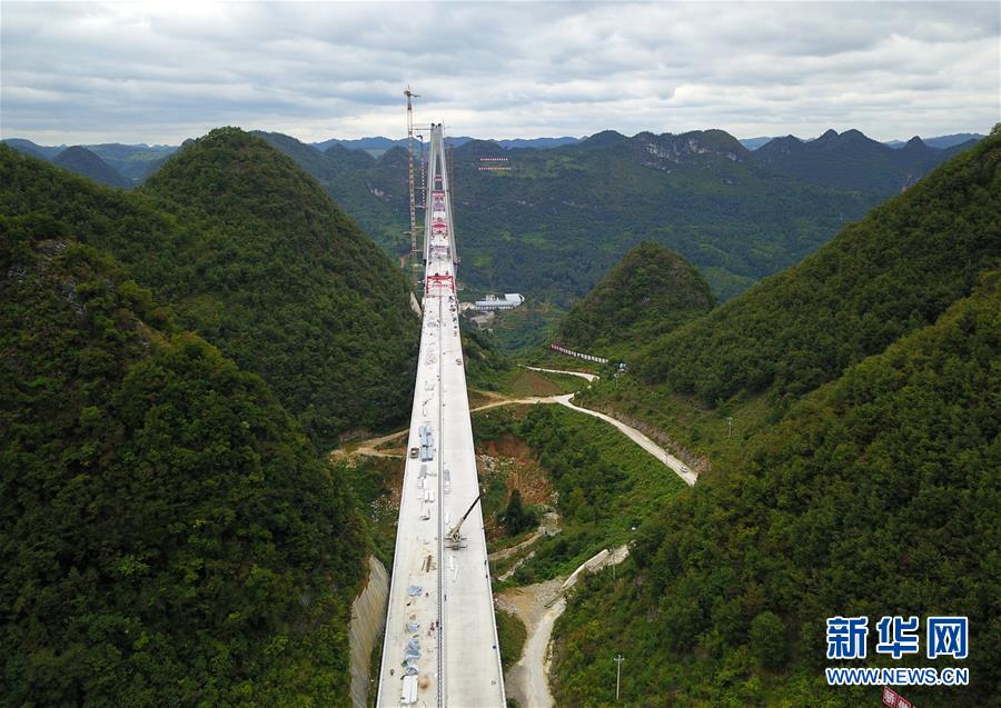這是正在澆筑最后一方混凝土的平塘特大橋(9月26日無人機(jī)拍攝)。新華社記者陶亮攝