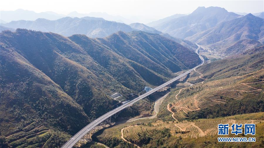這是紫望高速紫云南至邊饒段(無人機(jī)照片,1月1日攝)。新華社記者陶亮攝