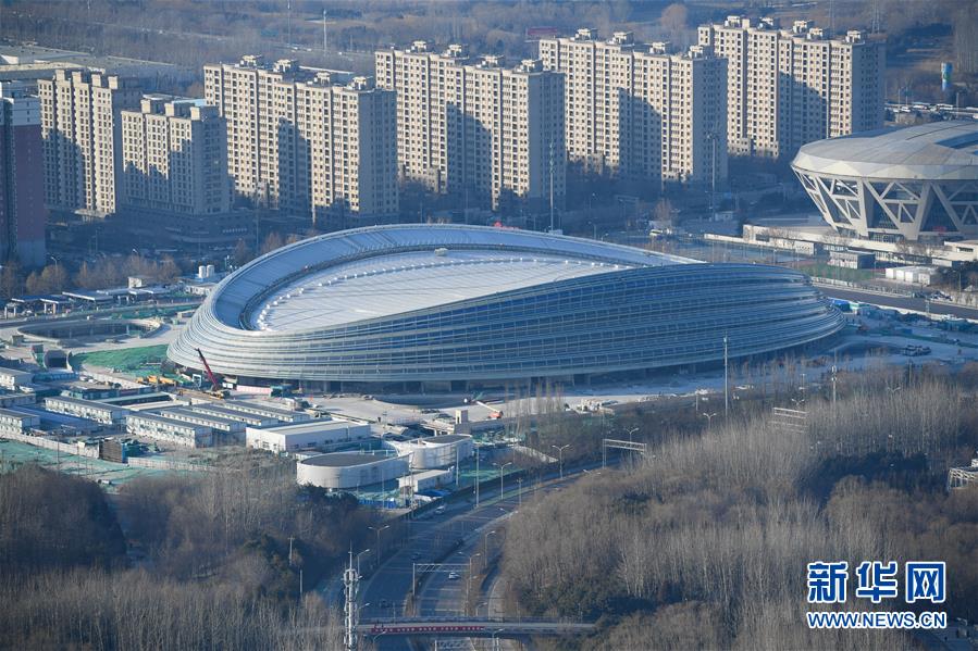 這是12月31日拍攝的實(shí)現(xiàn)封頂封圍的國(guó)家速滑館。新華社記者鞠煥宗攝