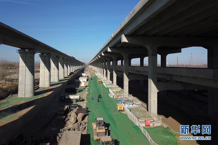 這是建設(shè)中的北京大興國際機(jī)場高速公路和北京軌道交通新機(jī)場線(2018年12月29日無人機(jī)拍攝)。新華社記者鞠煥宗攝