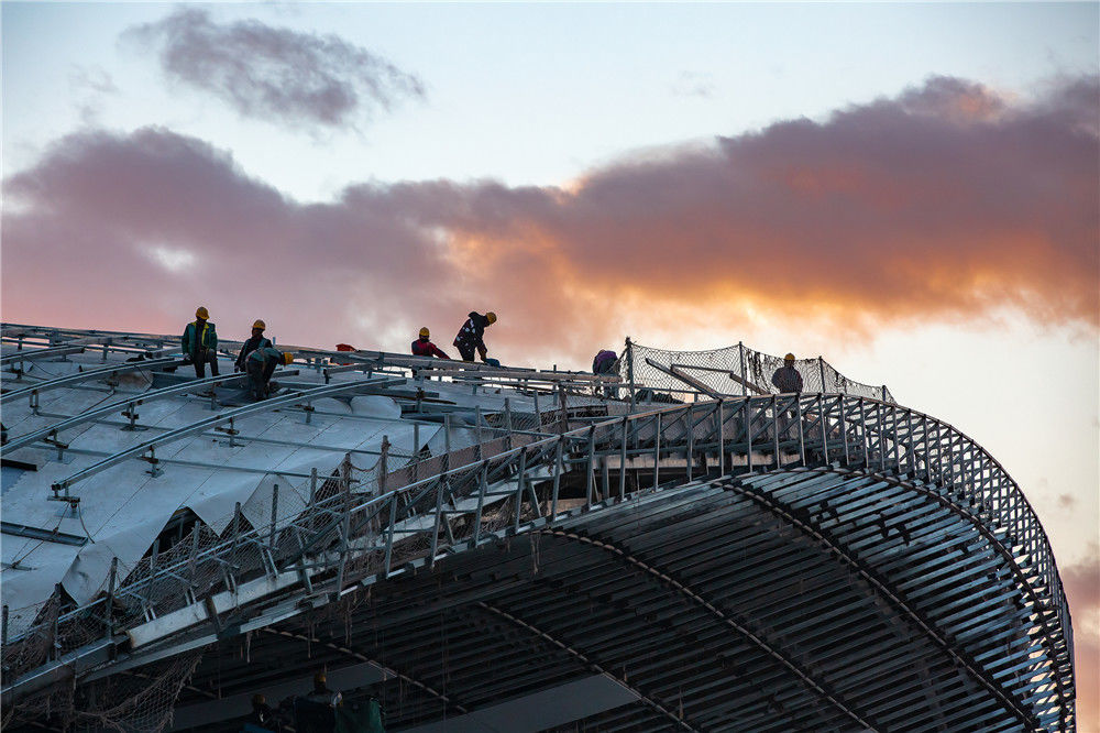 2018年10月27日,北京,大興新機(jī)場(chǎng)的建設(shè)者。周錦/視覺(jué)中國(guó)