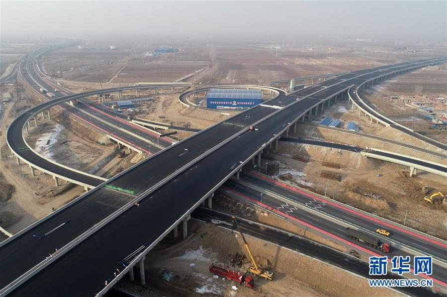 這是1月3日拍攝的北京大興國(guó)際機(jī)場(chǎng)北線高速公路廊坊段王場(chǎng)互通樞紐(無(wú)人機(jī)照片)。新華社記者牟宇攝