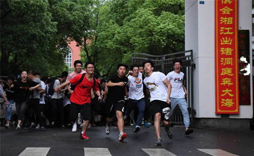 2019年6月8日,高考結(jié)束后,考生沖出湖南省長(zhǎng)沙市第一中學(xué)考點(diǎn)。新華社記者薛宇舸攝