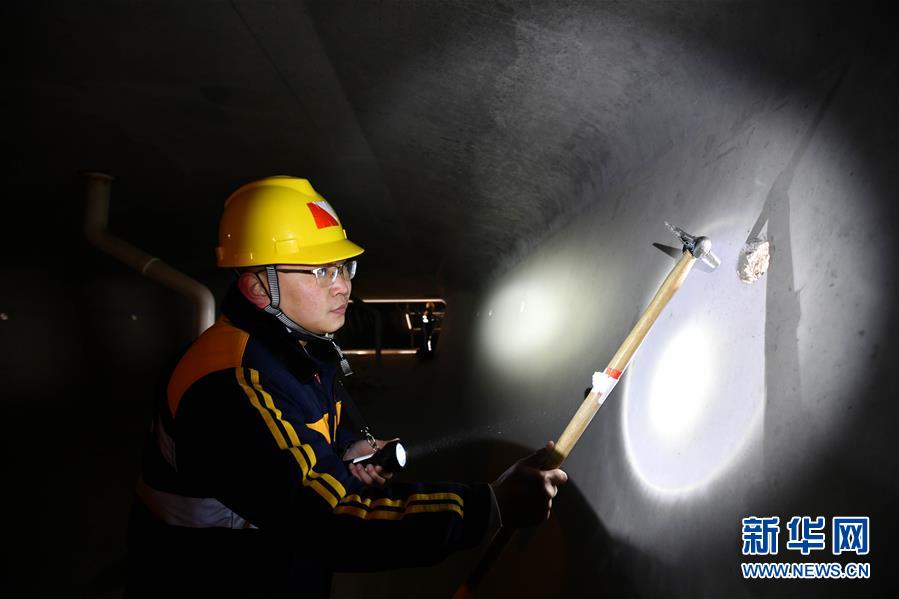 1月3日,中國(guó)鐵路濟(jì)南局臨沂工務(wù)段工程技術(shù)員畢雨佳在沂河特大橋箱梁內(nèi)檢查。新華社記者 朱崢攝