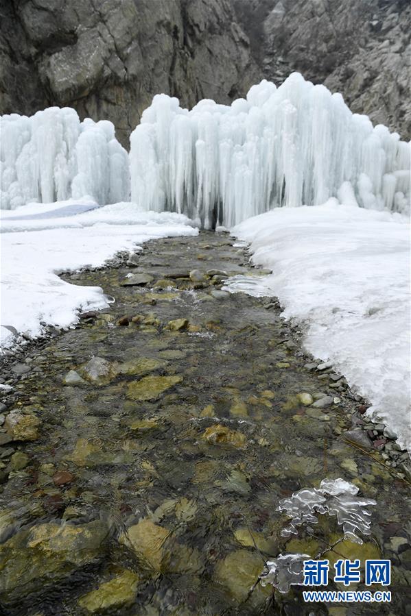 這是1月7日拍攝的賀蘭山巖畫景區(qū)內的冰瀑景觀。 新華社記者 王鵬 攝