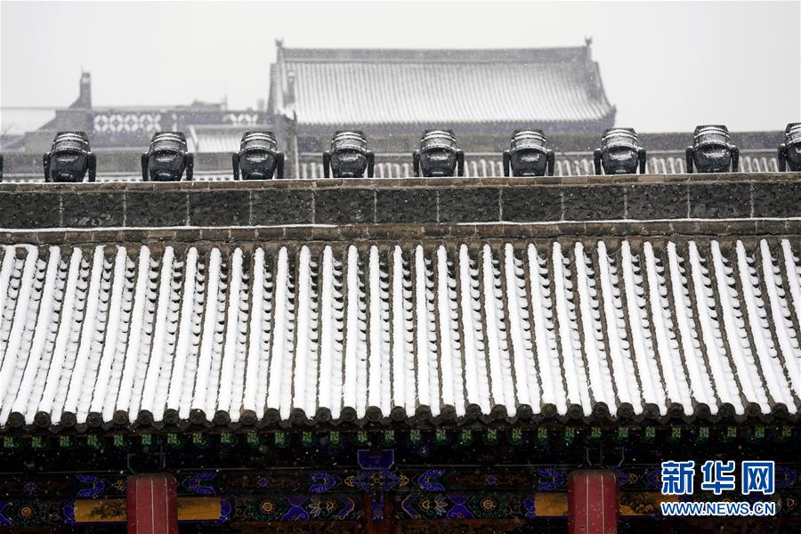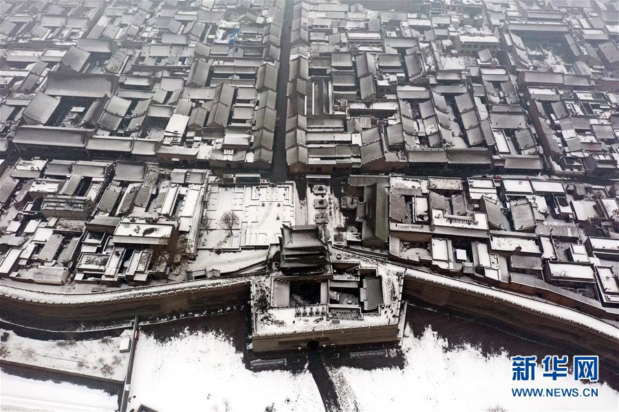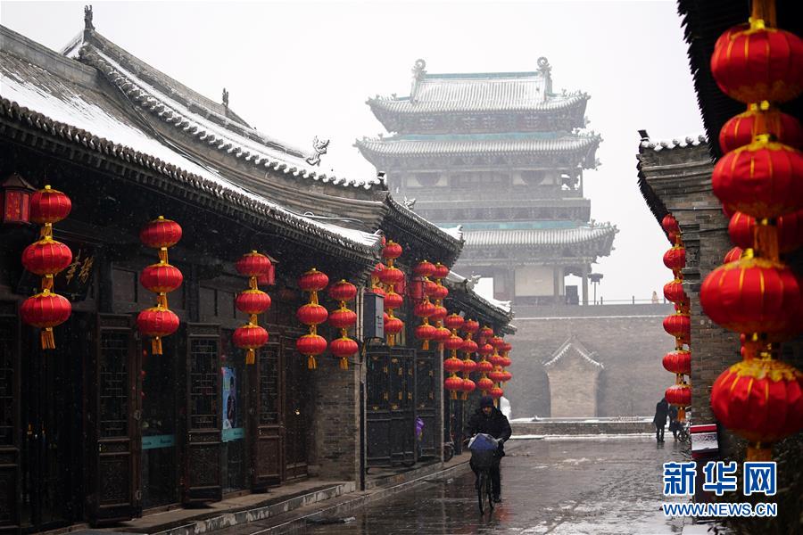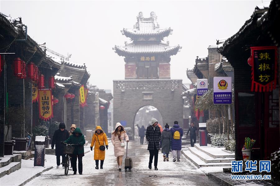 當日,山西省平遙縣迎來降雪,雪中的平遙古城銀裝素裹,美景如畫。平遙古城是目前中國保存最完整的古代縣級城池之一,1997年被列入世界文化遺產名錄。