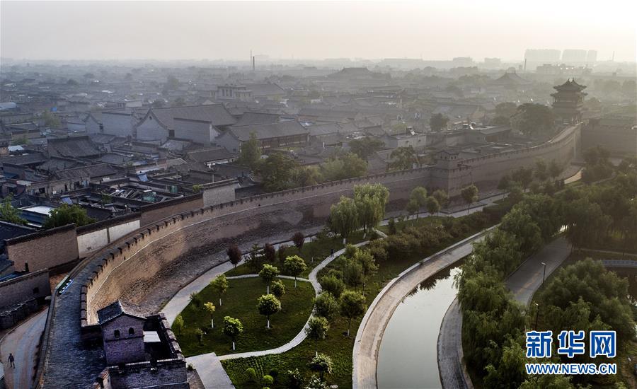 這是7月20日無人機拍攝的晨曦中的平遙古城。