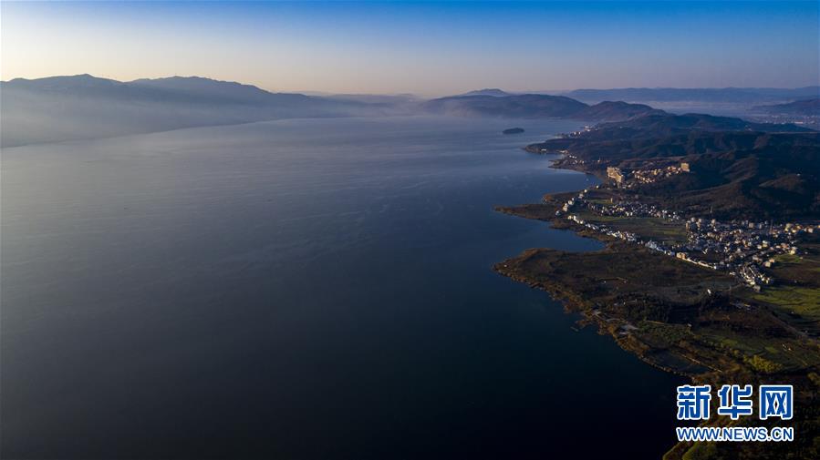 空中俯瞰撫仙湖(無人機(jī)照片,1月10日攝)。 新華社記者 江文耀 攝