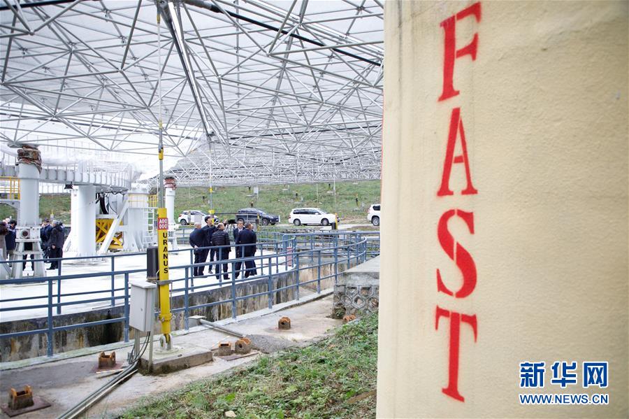 1月11日,專家學(xué)者對(duì)“中國(guó)天眼”進(jìn)行考察(檢修期間拍攝)。新華社記者劉續(xù)攝