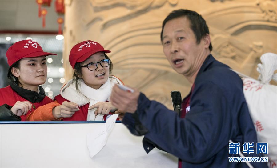 1月14日,西安北站客運(yùn)員吉如(右一)在引導(dǎo)旅客。路再遠(yuǎn)、再艱辛,也擋不住回家的腳步。在西安北站的每一個(gè)角落,處處充滿溫情和歸鄉(xiāng)的盼望。連日來(lái),西安北站日均發(fā)送旅客12.1萬(wàn)人次,一列列春運(yùn)的列車,載著中國(guó)人的鄉(xiāng)愁,駛向遠(yuǎn)方。新華社記者陶明攝