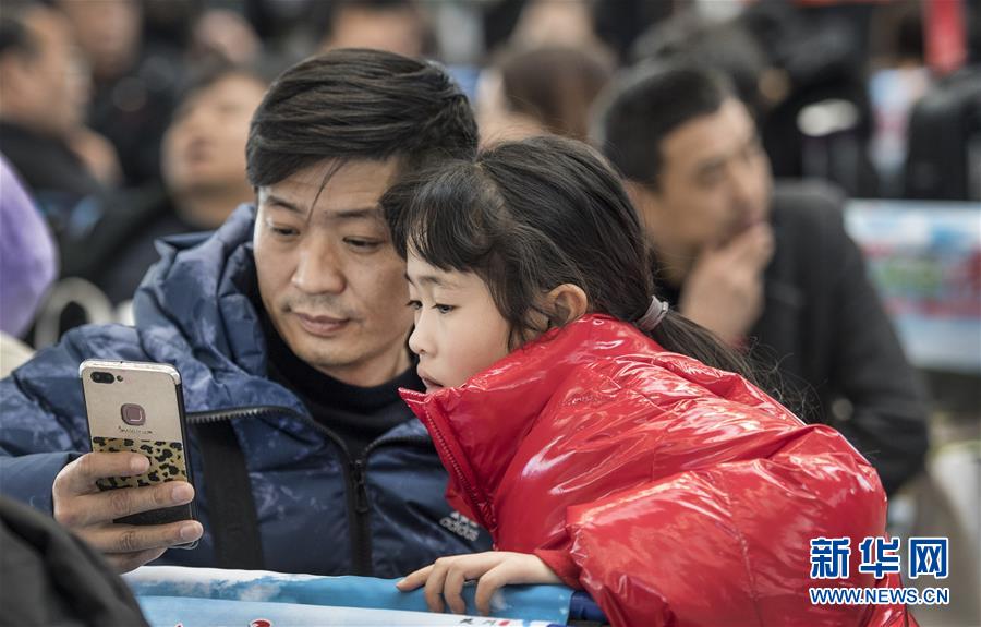 1月14日,一對(duì)父女在西安北站候車大廳用手機(jī)查看信息。路再遠(yuǎn)、再艱辛,也擋不住回家的腳步。在西安北站的每一個(gè)角落,處處充滿溫情和歸鄉(xiāng)的盼望。連日來(lái),西安北站日均發(fā)送旅客12.1萬(wàn)人次,一列列春運(yùn)的列車,載著中國(guó)人的鄉(xiāng)愁,駛向遠(yuǎn)方。新華社記者陶明攝