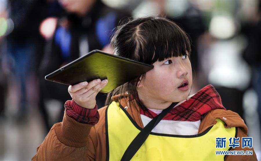 1月14日,一位小朋友在西安北站候車大廳與家人通話。路再遠(yuǎn)、再艱辛,也擋不住回家的腳步。在西安北站的每一個(gè)角落,處處充滿溫情和歸鄉(xiāng)的盼望。連日來,西安北站日均發(fā)送旅客12.1萬人次,一列列春運(yùn)的列車,載著中國人的鄉(xiāng)愁,駛向遠(yuǎn)方。新華社記者陶明攝